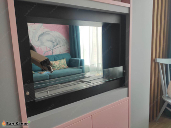 Биокамин сквозной SteelHeat ONE в перегородку между комнатами